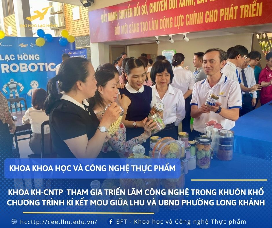 Sáng 16/12/2025, tại Hội trường UBND phường Long Khánh tỉnh Đồng Nai, Khoa Khoa học và Công nghệ thực phẩm đã tham gia triển lãm công nghệ trong khuôn khổ chương trình trường Đại học Lạc Hồng (LHU) ký kết Biên bản ghi nhớ hợp tác (MOU) với UBND phường Long Khánh.