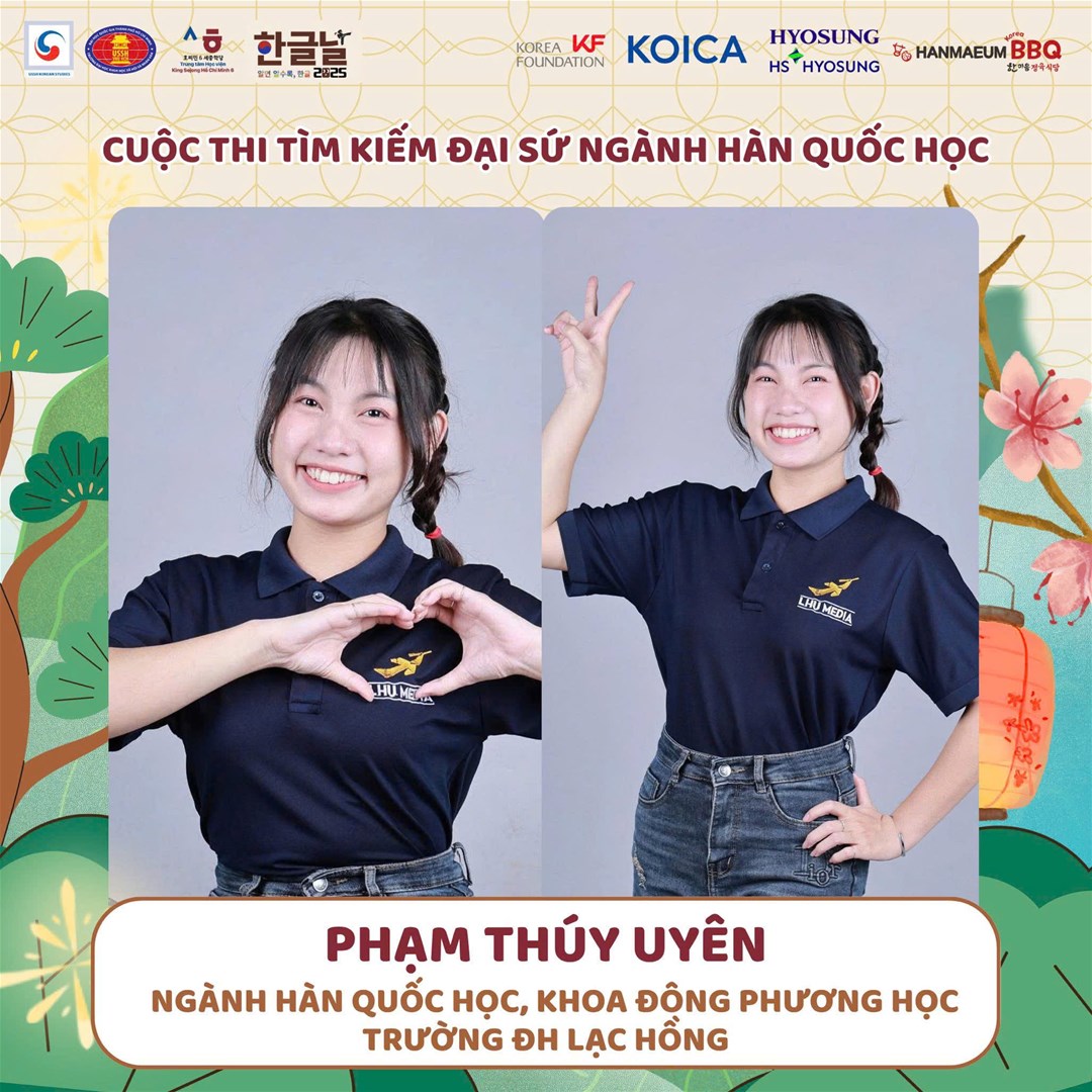 Thành tích này không chỉ là niềm tự hào của bản thân Thuý Uyên, mà còn là minh chứng cho chất lượng đào tạo và tinh thần học tập của sinh viên ngành Hàn Quốc học – Trường Đại học Lạc Hồng trên hành trình hội nhập và lan tỏa văn hóa Hàn Quốc tại Việt Nam.