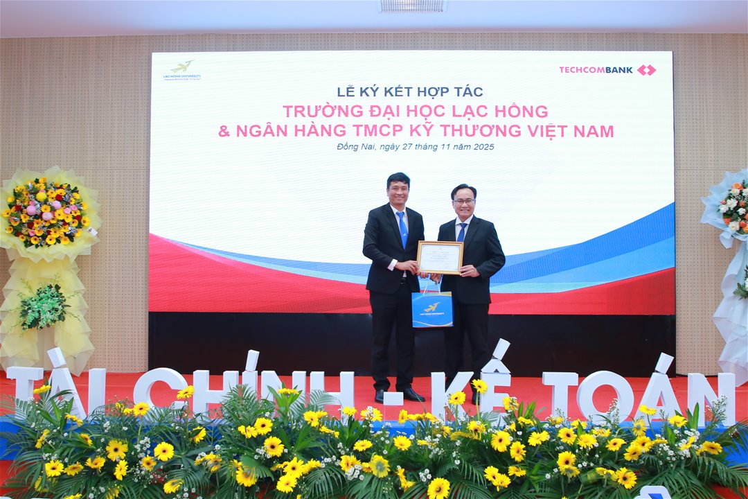 Chiều ngày 27/11/2025, tại phòng A301 – Trường Đại học Lạc Hồng, Khoa Tài chính – Kế toán, Trường Đại học Lạc Hồng đã long trọng tổ chức Lễ ký kết Thỏa thuận hợp tác (MOU) với Ngân hàng TMCP Kỹ Thương Việt Nam (Techcombank). Sự kiện đánh dấu bước phát triển quan trọng trong hoạt động hợp tác đại học – doanh nghiệp, hướng đến nâng cao chất lượng đào tạo và mở rộng cơ hội nghề nghiệp cho sinh viên ngành Tài chính – Ngân hàng.