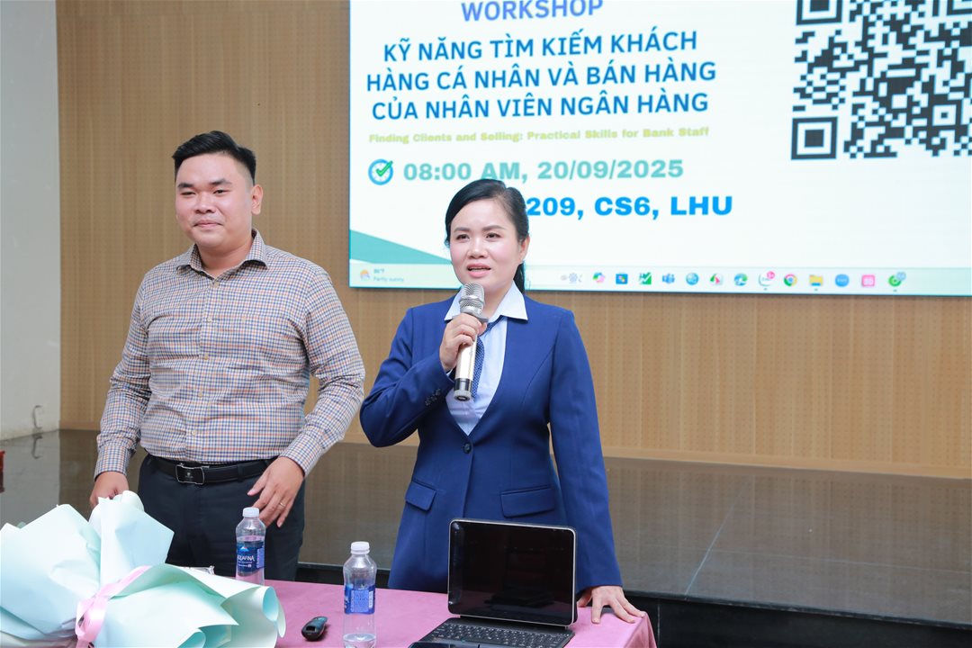 In order to strengthen the linkage between theoretical training and practical application, while equipping Finance and Banking students with essential skills for their future careers, the Faculty of Finance and Accounting at Lac Hong University organized the workshop entitled “Skills in Identifying Individual Clients and Selling for Bank Staff.” The event took place at 8:00 a.m. on September 20, 2025, in Room I209, Campus 6, Lac Hong University.