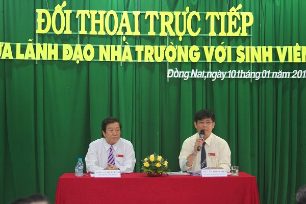 On the morning of January 10, a direct meeting between students and the University Management Board was held at Room A 301 – campus 1 – Lac Hong University. The program was attended by Chairman of the Trustees Board, Rector People’s Teacher Dr. Do Huu Tai, Vice Rectors Dr. Nguyen Van Nam and Lam Thanh Hien, M.A, representatives of offices and faculties and nearly 500 students at all levels.
