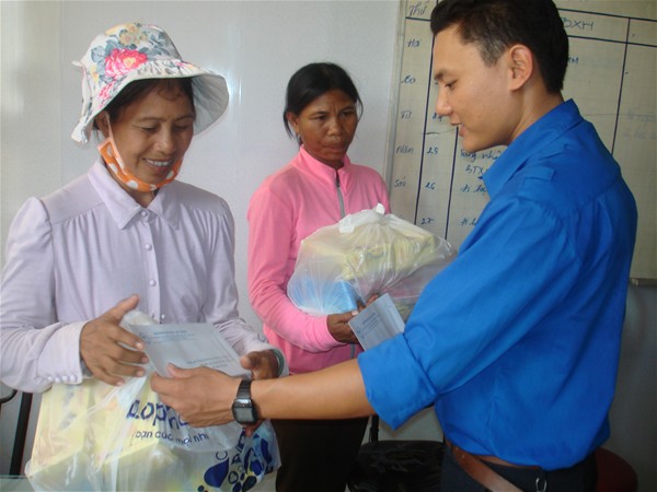 On April 26, LHU's Youth Union – Student Association in association with Dong Nai AO/dioxin Victims’ Association visited and presented gifts to 20 AO/dioxin victims in Cam My and Dinh Quan districts. Each gift included 20 kilos of rice, cooking oil, cakes,... equivalent VND 300,000 and VND 300,000 in cash.