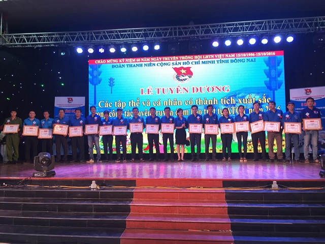 On the occasion, the Dong Nai Youth Union bestowed and awarded certificates of merit to 29 collectives and 56 individuals for their excellent achievements in propagandizing 2016 traffic safety, presented 10 scholarships each worth VND 1 million to 10 poor pupils who are children of traffic victims. The Organization Board also awarded certificates of merit to LHU collective, Vice Head of Dormitory Management Board Nguyen Viet Hung and Vice Chairman of Student Association Huynh Thuc Hieu for their outstanding contributions in propagandizing traffic order and safety.