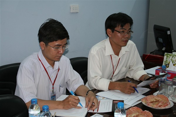 Tran Dung, M.A and Nguyen Tam Son. M.A receiving the delegation