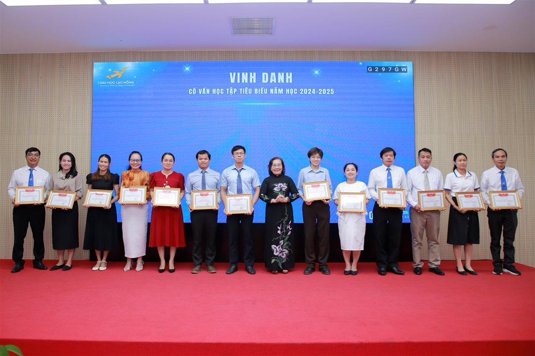 On the morning of July 9, 2025, at Hall A301, Lac Hong University organized the Conference to Review and Honor Scientific-Technological, Community Service, and Academic Advising activities for the 2024–2025 academic year. The event was an opportunity for the entire university to reflect on its achievements while recognizing and commending the groups and individuals who made significant contributions throughout the year.