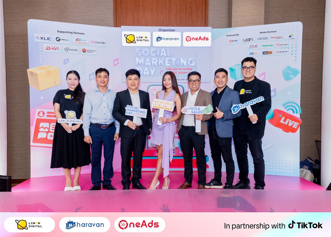 Mr. Tran Thanh Hai, second from left, takes a souvenir photo with representatives from Haravan, netAads, Tiktok, LEMON, and others.