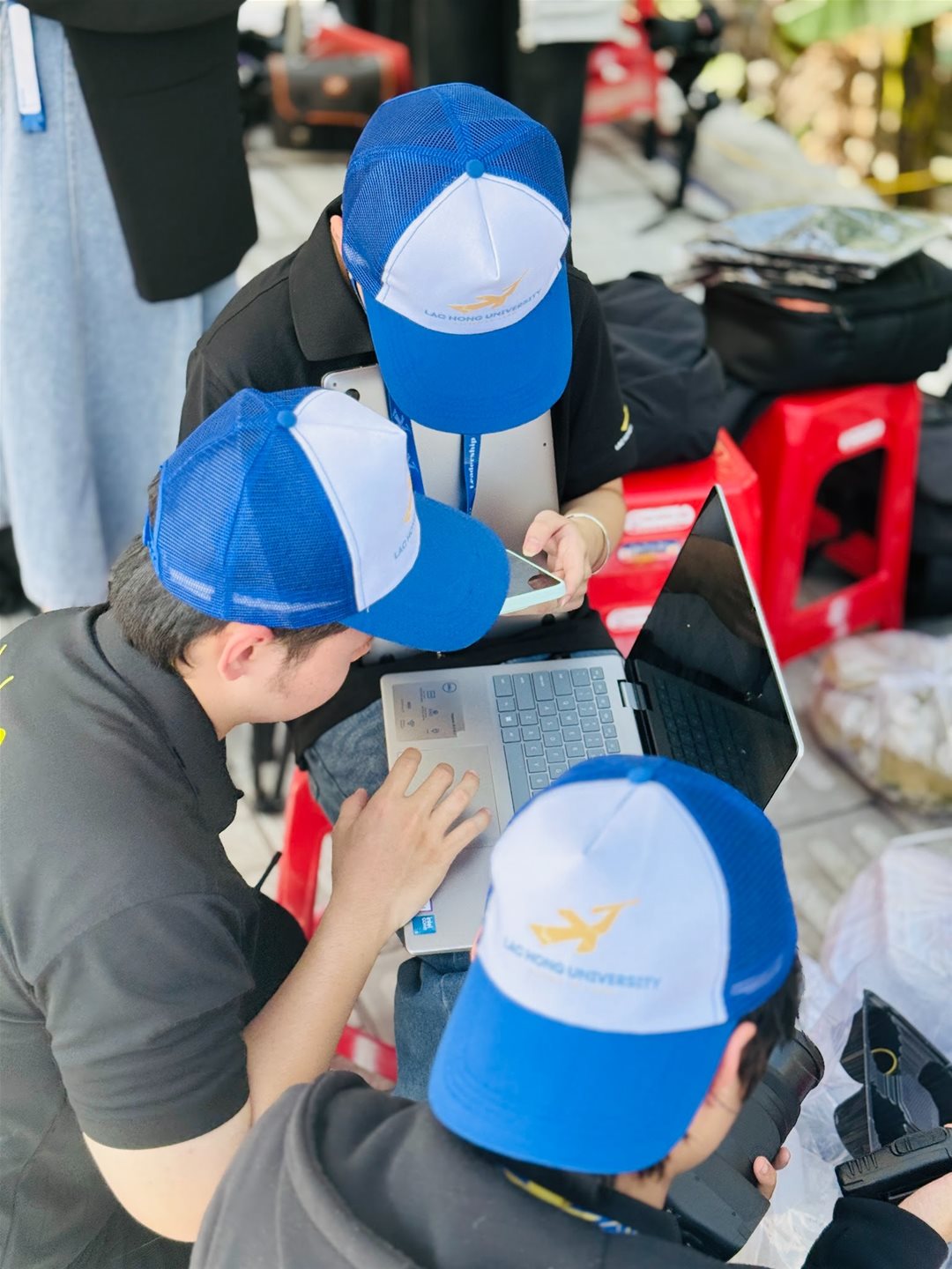 In the days leading up to the Tran Bien Countdown, the backstage area has been in a state of constant activity. Sound checks, lighting demos, signal testing, and various technological devices are operating around the clock. Amidst this bustling environment, students and alumni from Lac Hong University (LHU) are directly managing several key technical and media components, contributing to the creation of a modern and professional community event.