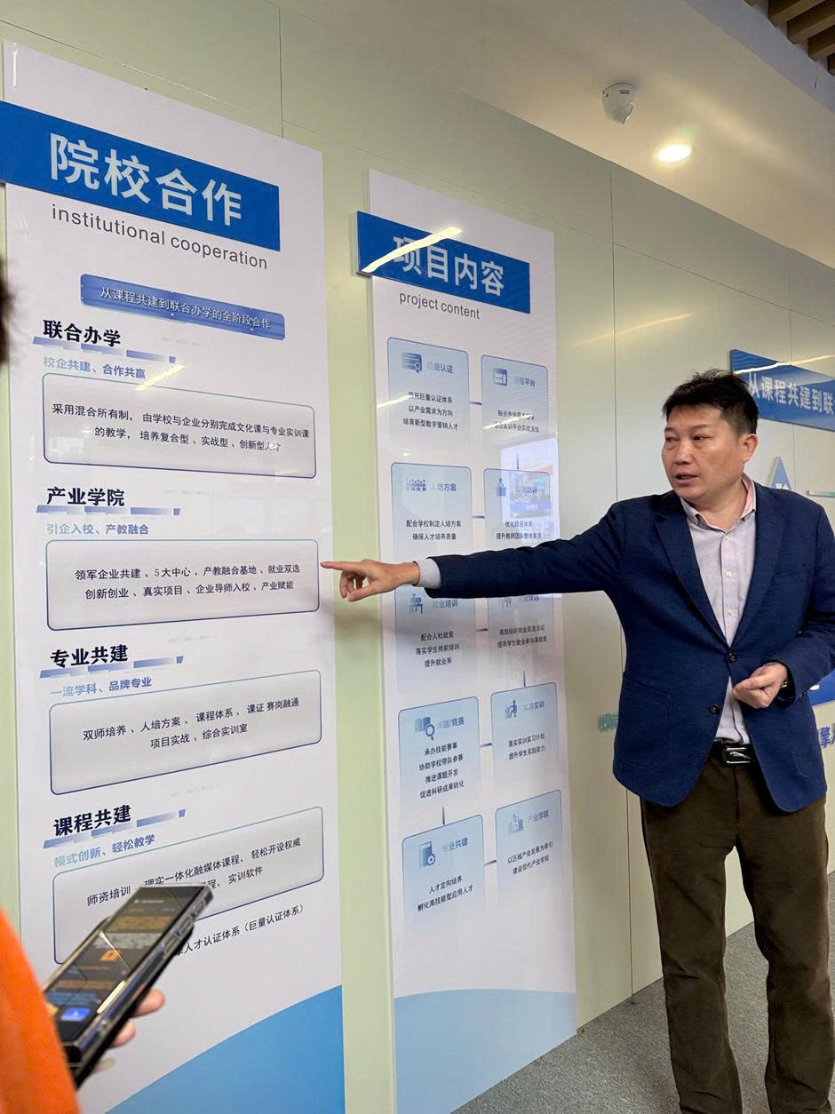 Information boards detailing digital marketing training roadmaps, clearly demonstrating the direct involvement of businesses in developing practical curricula